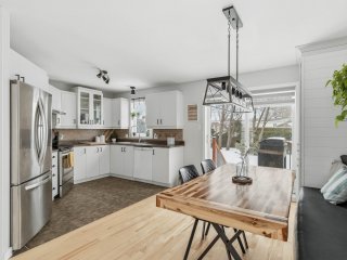 Inclus : Lave-vaisselle ,luminaires ,spa ,stores ,rideaux ,pôles ,Thermopompe mural , ouvre porte électrique de garage ,cabanon , banquette .