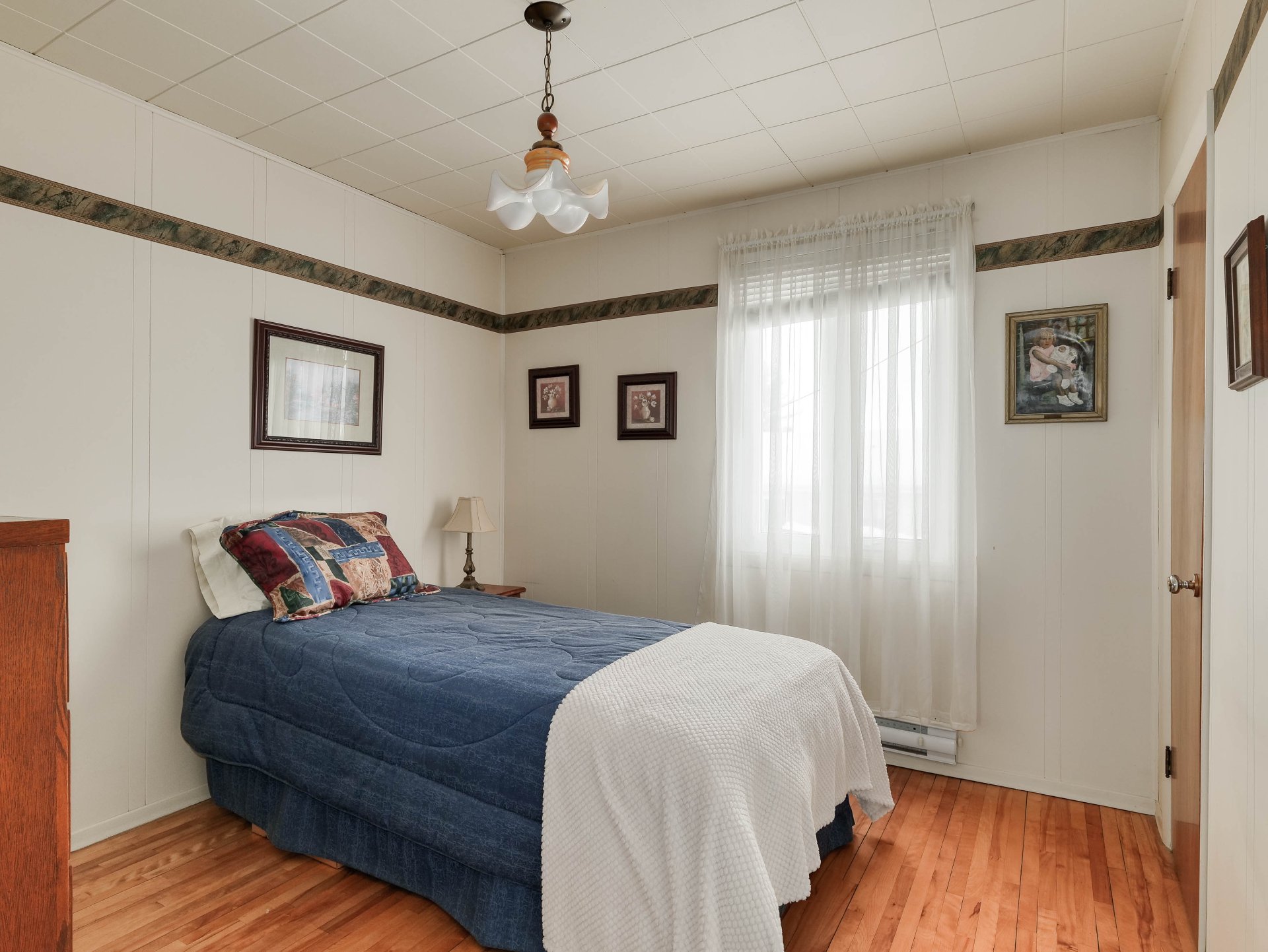 | Chambre à coucher | 9.11 x 12.3 P | Rez-de-chaussée | Bois |